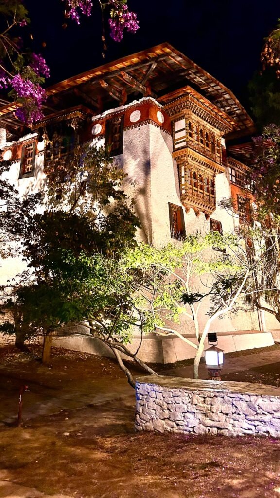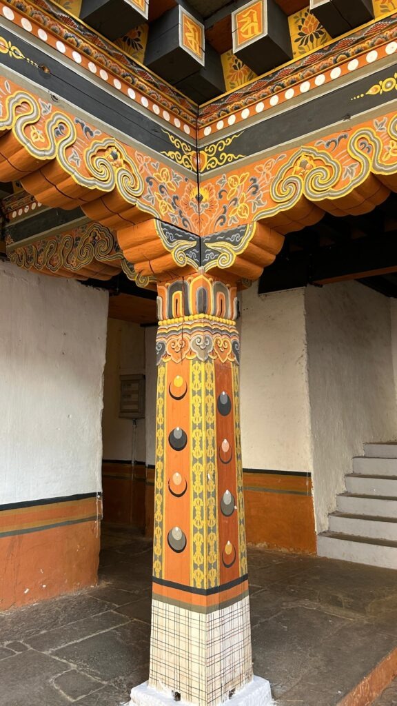 The dzong’s exterior is adorned with intricate wood carvings and colorful paintings that depict various Buddhist deities and historical events. The massive wooden doors and windows are beautifully crafted, allowing natural light to filter into the interior spaces.